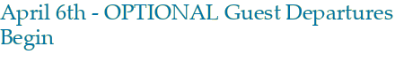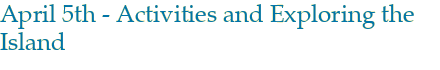 | Light breakfast setup from 6AM-9AM. Some guests may depart this day. Recommendations will be provided for exploring the island on your own for those staying over. |